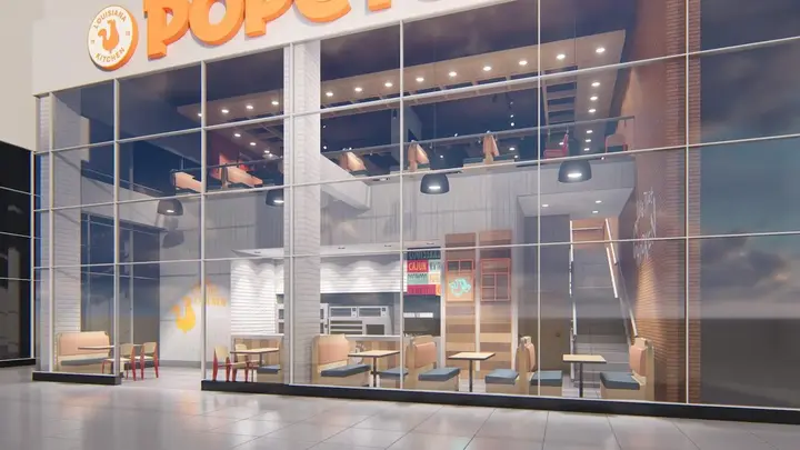 Diseño de fachada e interiores que maximiza el atractivo comercial en plaza, capturando la atención mediante una comunicación visual coherente.